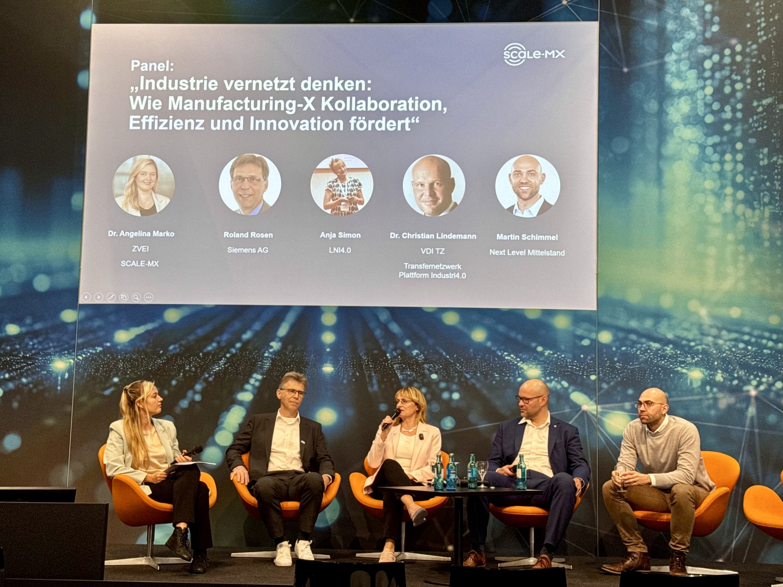 Auf der diesjährigen SPS war SCALE-MX auf der Technology Stage mit einer Panel-Diskussion und einer Keynote der Konsortialleitung Dr. Angelina Marko und Dr. Marc Hüske vertreten.